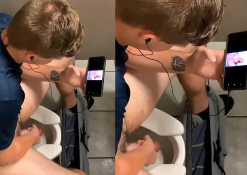 Gozou no banheiro só vendo a bucetinha no celular