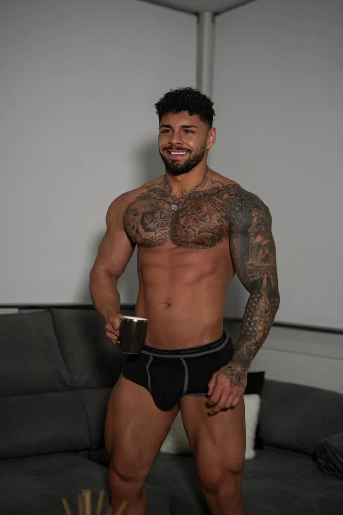 Andrew emtregando tudodo Boy Fitness que precisa