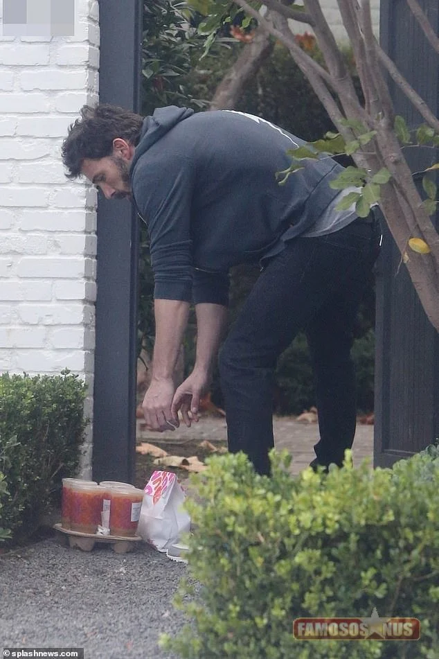 Ben Affleck, de 48 anos de idade, foi fotografado pela primeira vez desde que veio a público o fim de um namoro no portão de sua casa.