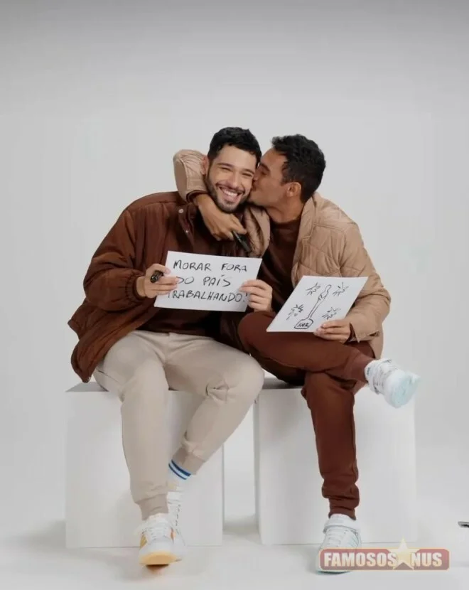 Bruno Fagundes e Igor Fernandez posaram no maior clima de paixão em uma campanha para o Dia dos Namorados. Juntos desde o início das gravações da novela "Cara e coragem", que começaram no primeiro semestre de 2021, eles só assumiram o relacionamento publicamente em janeiro deste ano, quando postaram uma foto romântica nas redes sociais.