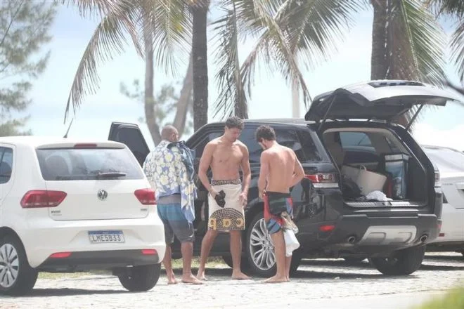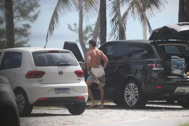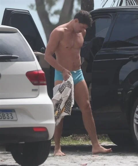 Cauã Reymond é pego no flagra trocando de roupa em praia no Rio