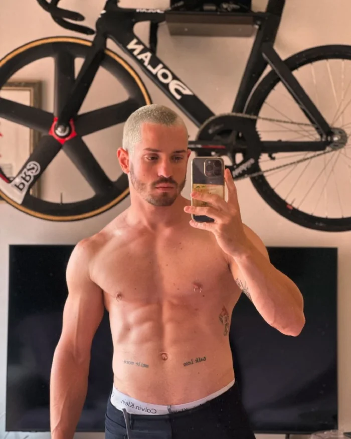 O que muito de vocês não devem saber é que ele criou uma página de fãs, e está entregando muito, muito memso, e os atributos de atleta ciclista do rapaz são impressionantes, e não falamos só do dote!