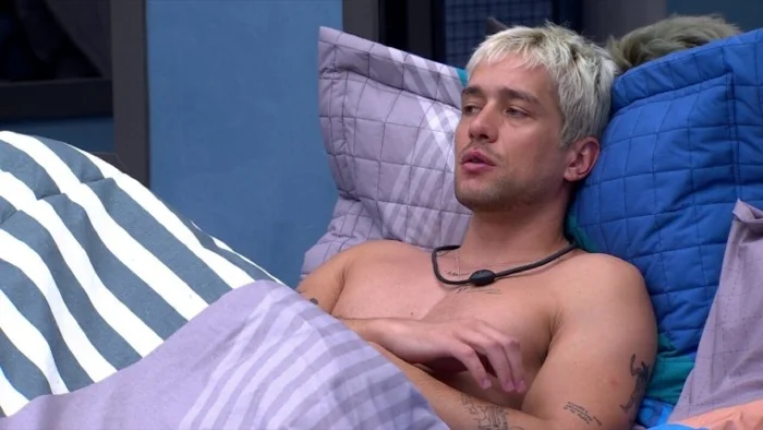 Estrela da Casa: Matheus Torres toma banho de cueca branca