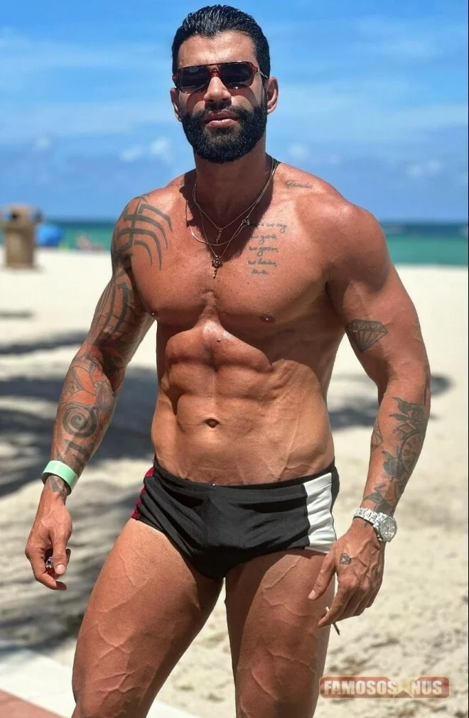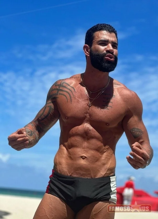 Gusttavo Lima surpreende maludo de sunga na praia