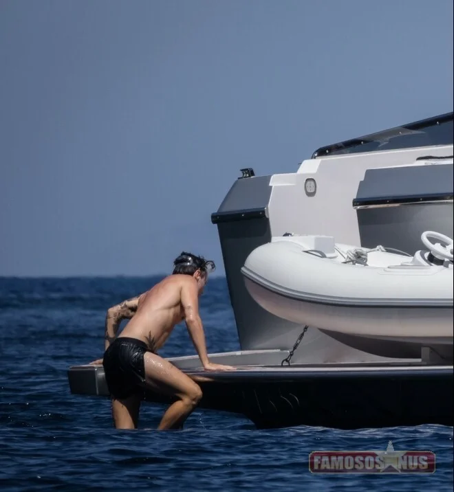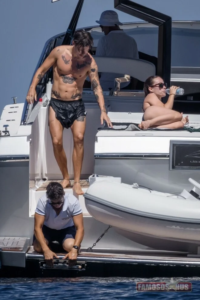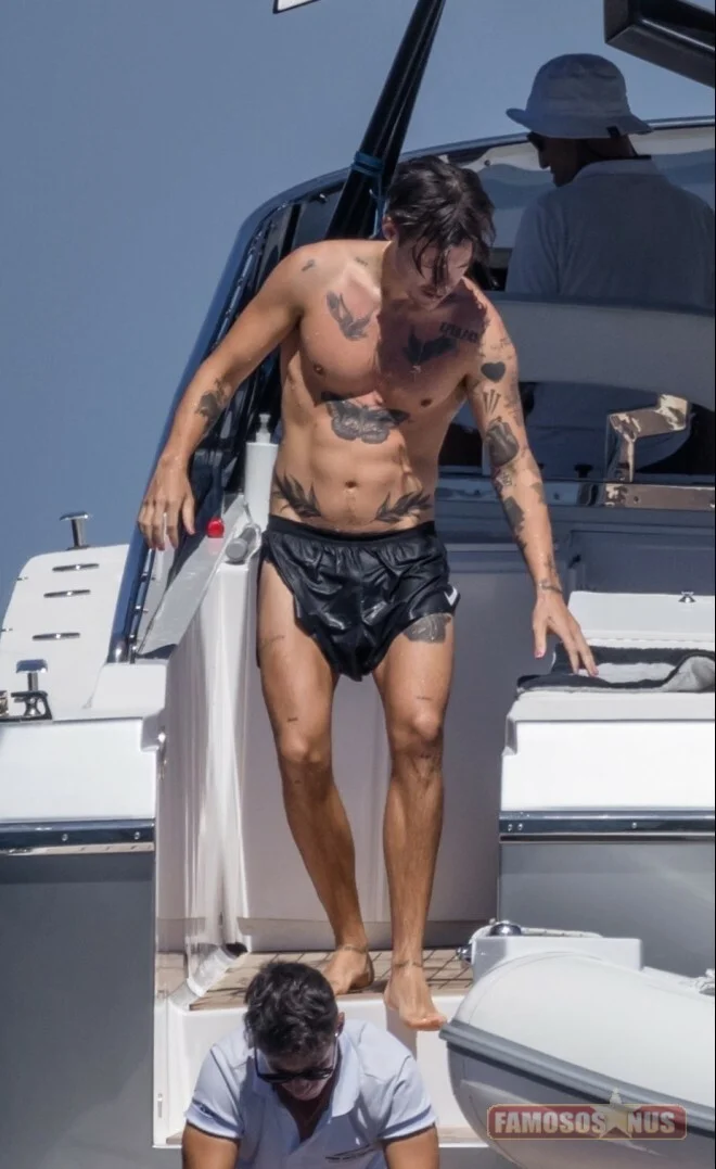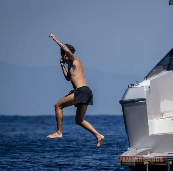 Harry Styles surpreendeu com corpo sarado em passeio de iate