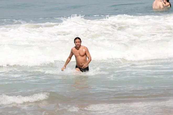 Na tarde desta sexta-feira (5), o ator curtiu o sol do Leblon, na zona sul do Rio de Janeiro, aproveitando para se refrescar com um belo banho de mar.