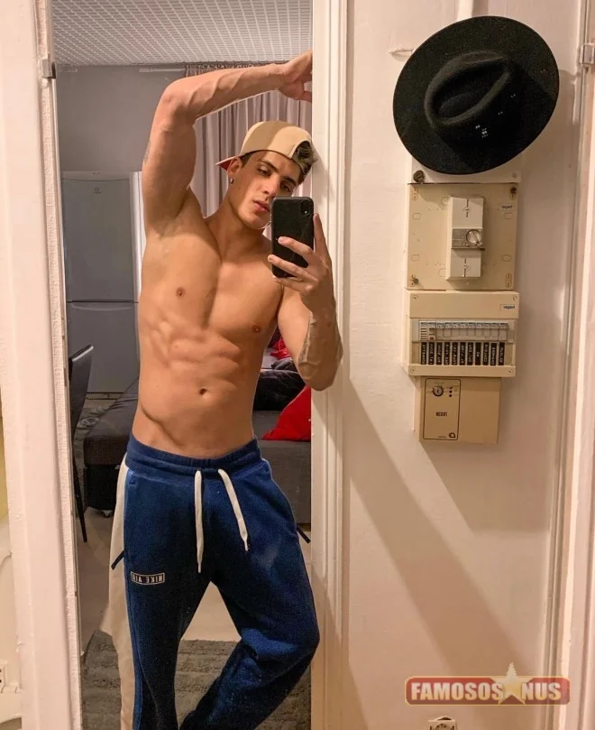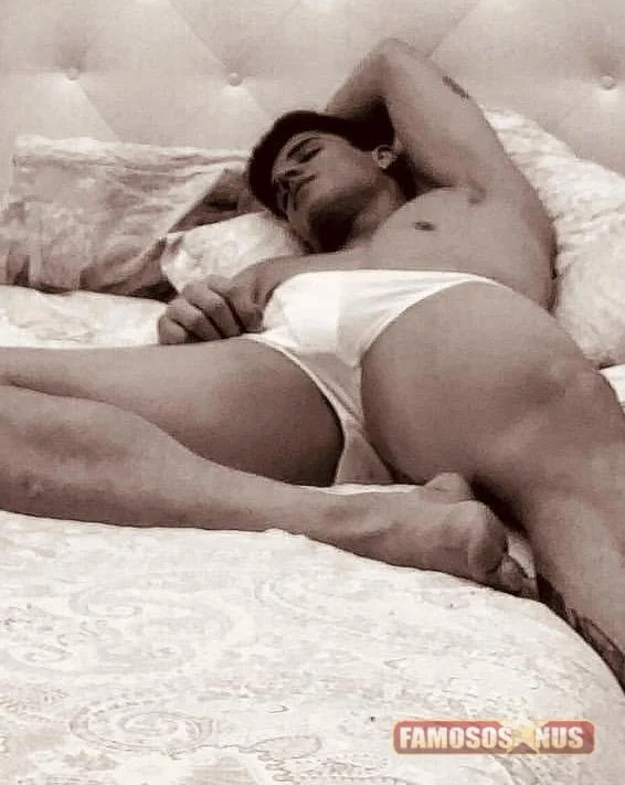 Jogador Thiago Ramos assim de cueca branca na cama