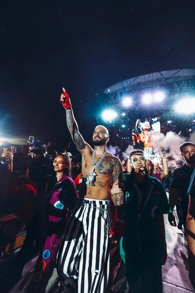 Maluma quase perde a toalha em divulgação de música com Anitta
