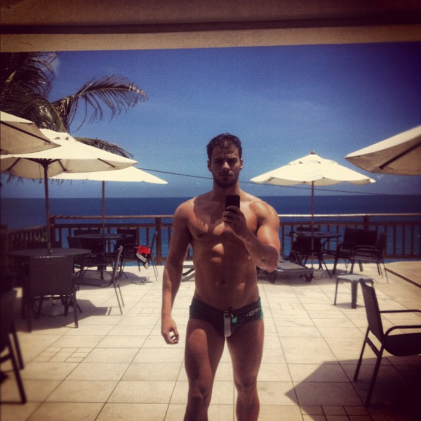 O modelo Lucas Malvacini já está curtindo o verão como se deve: de sunguinha em um lugar paradisíaco.