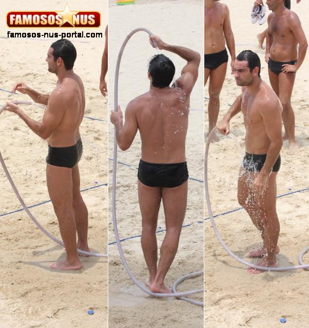 E o tema de hoje é banho de mangueira clicamos o nosso galã de praia todo molhadinho se refrescando no intervalo do jogo de futvôlei.