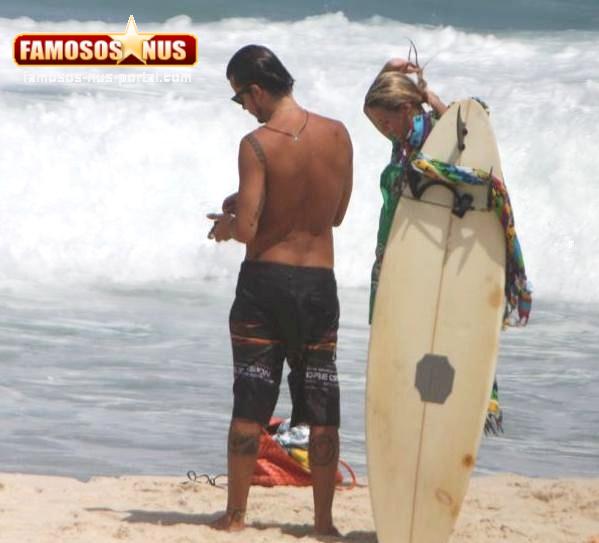 O ator Paulo Vilhena aproveitou o dia de sol que fez no Rio para curtir a praia nesta quinta, 19, ele foi clicado com a atriz Carolina Dieckmann na praia da Reserva, na Barra da Tijuca, Zona Oeste da cidade.