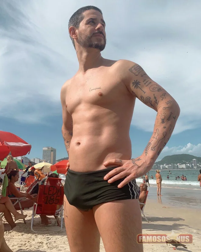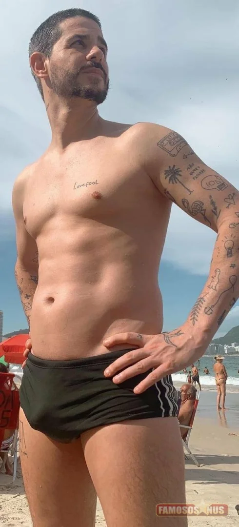 Pedro Neschling surge de sunga e mala causa muito