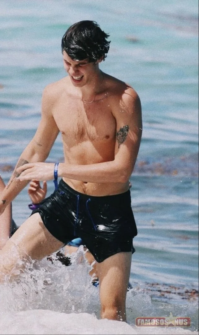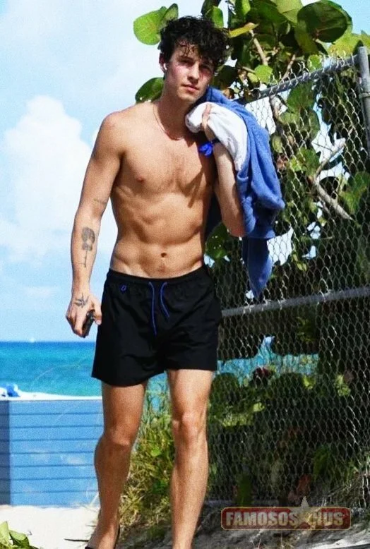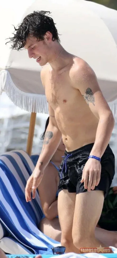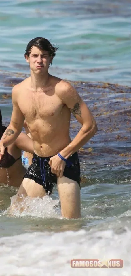 Shawn Mendes clicado na praia e quase motra de mais