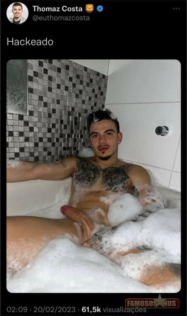 A foto, publicada às 02h09 da manhã, mostrava Thomaz Costa pelado, em uma banheira cheia de água e espumas. A legenda dizia “hackeado”, e no momento do print já tinha 61 mil visualizações.
