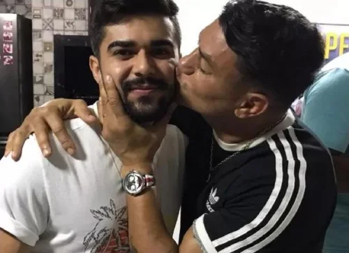 Popó Freitas encantou os fãs nas redes sociais ao aparecer dando um beijo no rosto do genro, Matheus...