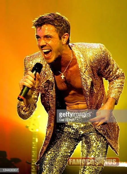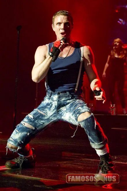 O cantor Jake Shears acabou sendo flagrado na correria da troca de roupas do show.