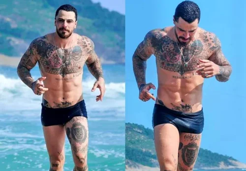 Felipe Titto rouba a cena de sunga na praia nessa quinta