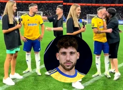 Fã invade o campo e da beijão no jogador Roger Carbó